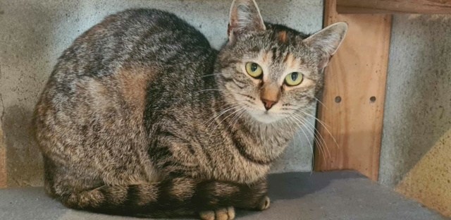 Qui suis-je ? Sexe : Femelle Age : né en avril 2022 Robe : Tigrée avec des tâches rousses Identification : Oui Stérilisée : Oui Vaccinée : Oui Dépistage sida/leucose : négatif Mon caractère Gentille petite puce sociable, mais encore un peu timide quand elle ne connait pas. Une fois en confiance, elle se laissera… Lire la suite Toupie